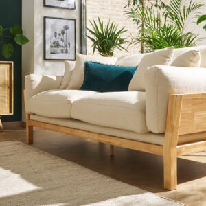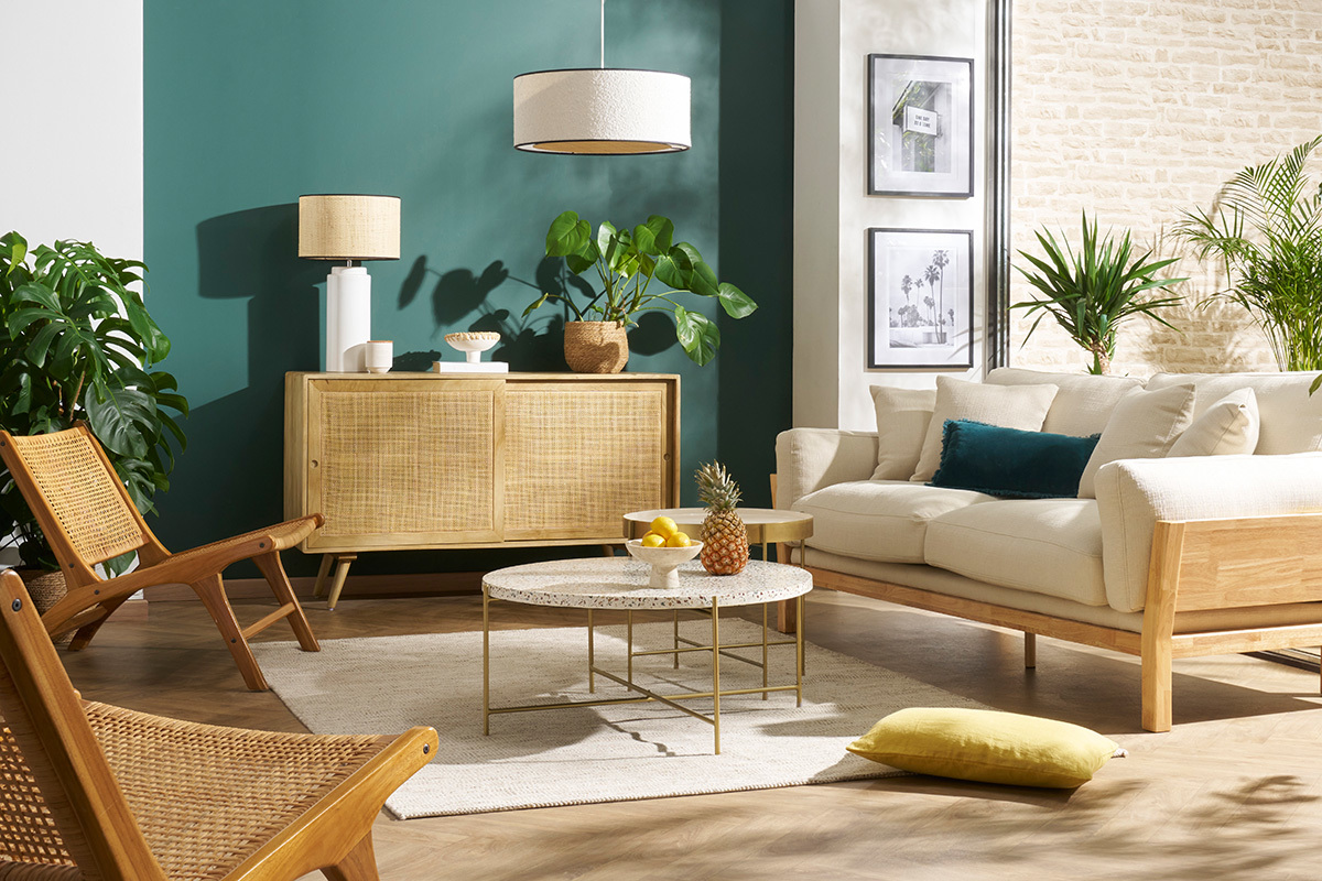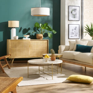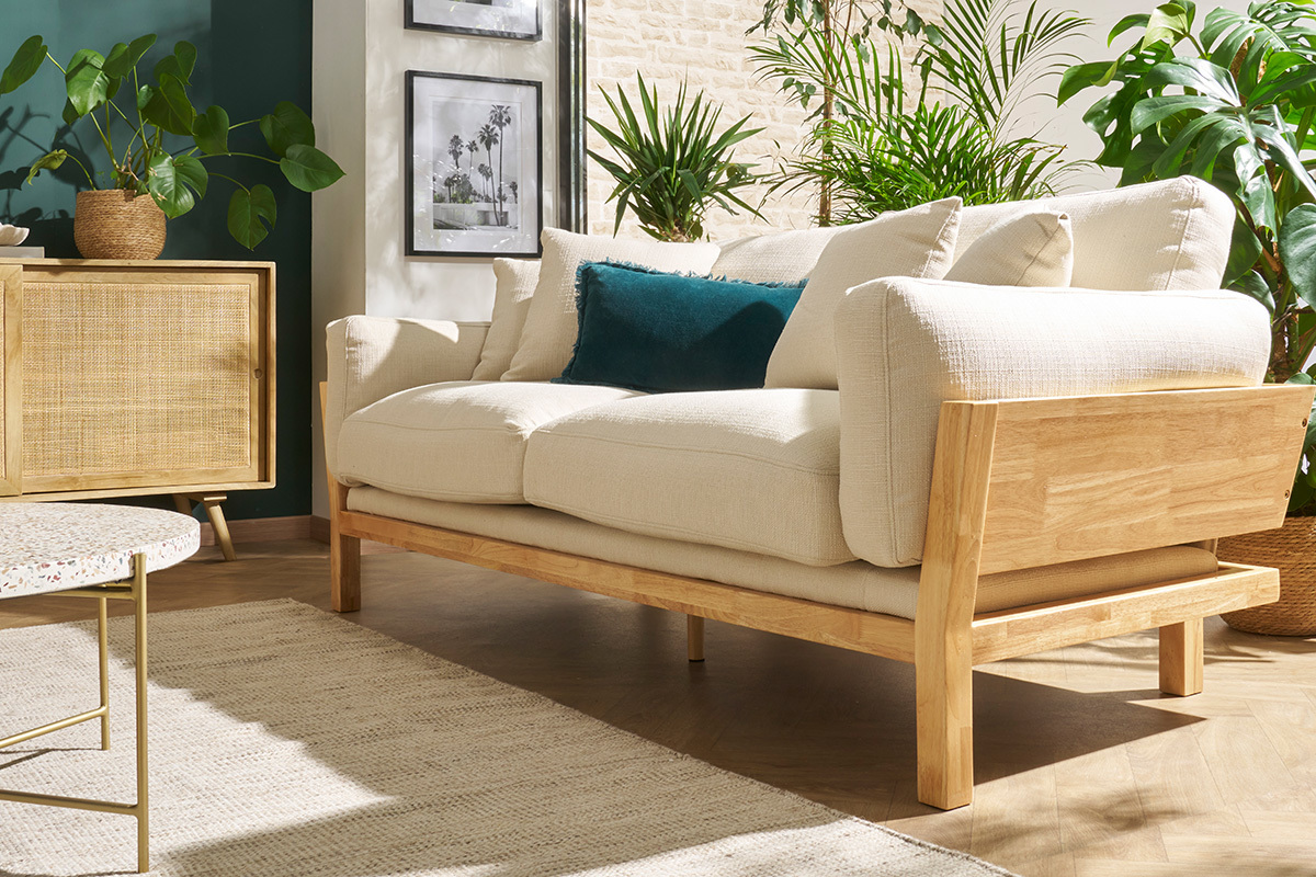 Pour un salon d’environ 20 à 30 m², optez pour un canapé 3 places ou un canapé d’angle compact (environ 200 à 250 cm) pour garder un équilibre visuel et faciliter la circulation.